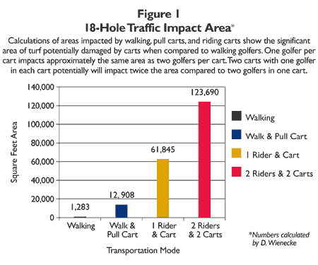 A study from the USGA showed that the amount of turf area covered in a typical round of golf is as follows: