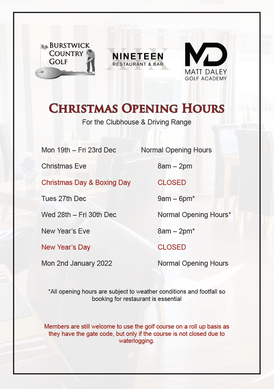 If you are still looking for some last minute gifts we have plenty to go at in the shop, or you can buy a voucher for the golf club, Nineteen Restaurant and lesson packages at the Matt Daley Golf Academy.