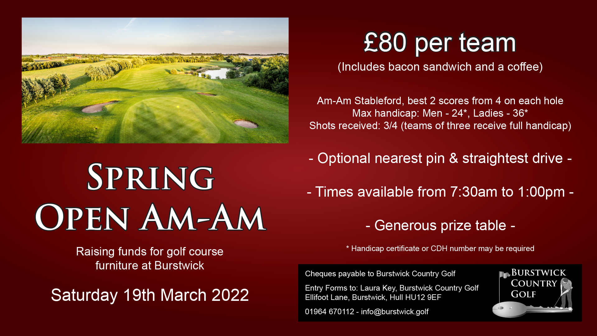 Teams cost just £80 to enter and you don’t have to be a member of Burstwick, you just have to have a valid handicap from any club.