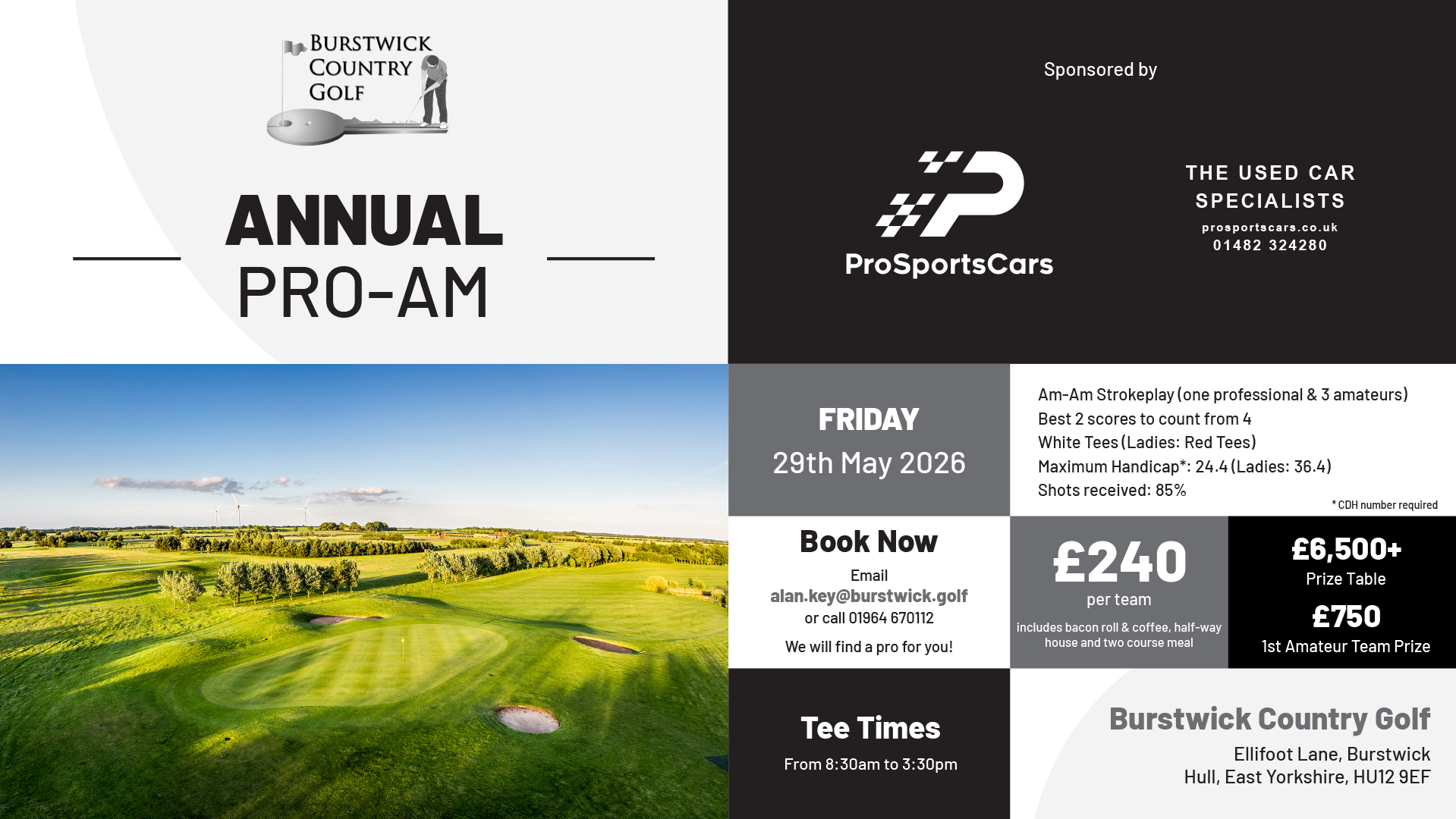 We are hosting our annual Pro-Am, sponsored by Pro Sports Cars, on Friday 29th May 2026, and it promises to be a fantastic event - the flagship of the club - with professionals bringing teams coming from all around Yorkshire and further afield.